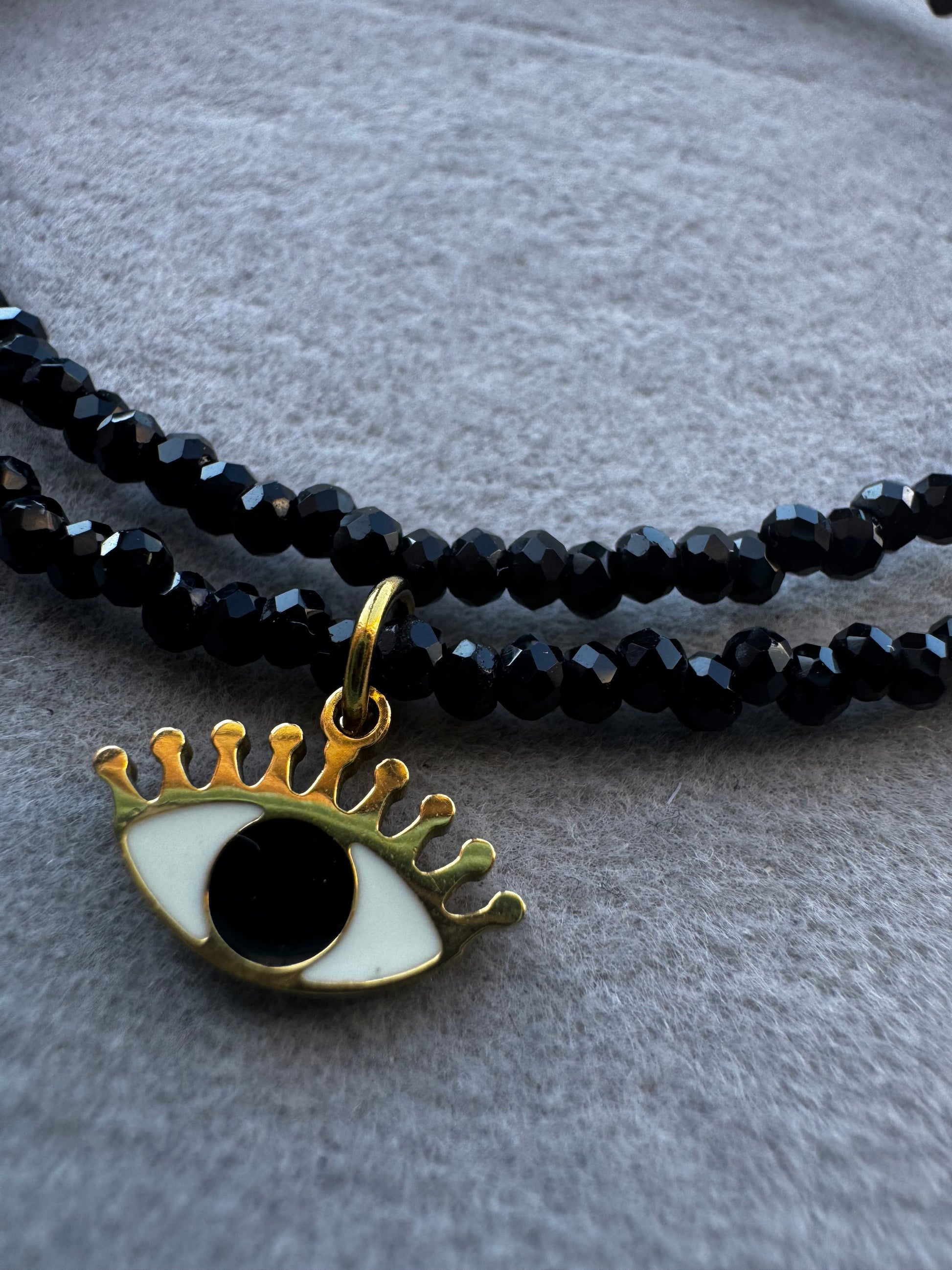 Κολιέ με μαύρο κρυσταλλάκι 2mm & ατσάλινο ματάκι